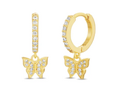 14k Gold Plated Butterfly Dangle Earring Hoops