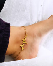 Our Custom Name Anklet is made out of quality Sterling Silver (.925), and comes with a rolo chain style. Any name of your choice is handcrafted and fully customized in the color that you'd like: Silver, 14k Yellow Gold Plated or 14k Rose Gold Plated and in the font of your choice.