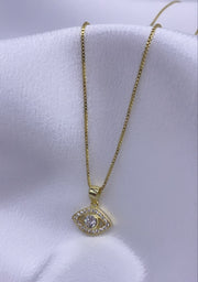 14k Gold Plated Sterling Silver Evil Eye Pendant Chain